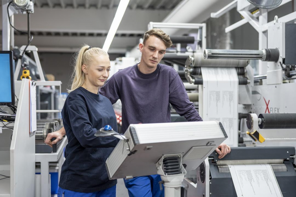 Sie bereiten Druckmaschinen und Materialien sorgfältig für die Haftetikettenproduktion vor und rüsten die Flexodruckmaschinen für den Produktionsprozess. - Maschinenbedienung: